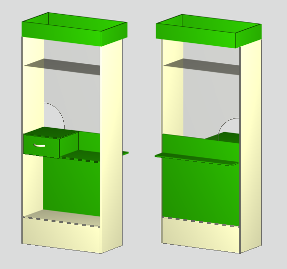 Стеллаж "ВА-05" изготавливается из ЛДСП, полки выполнены из стекла 6 мм. Дно подтоварного отсека располагается на 250 мм от пола, согласно требованиям.